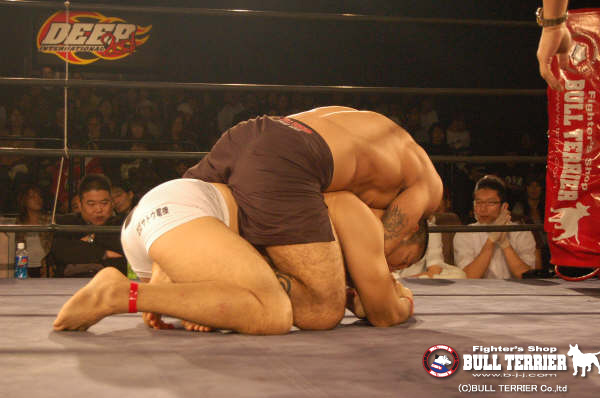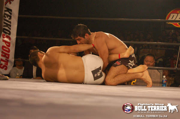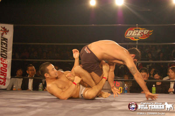 初来日した未知の強豪である柔術世界王者、ルーカス・レプリと現DEEP王者の長谷川秀彦の一戦。
