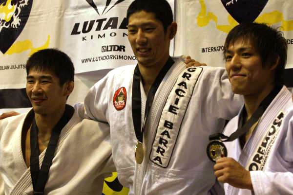 左から3位、北村潔(ノヴァウニオン)、優勝、パブロ・シウバ(バッハBH)、準優勝、松本義彦(パラエストラ川越)。