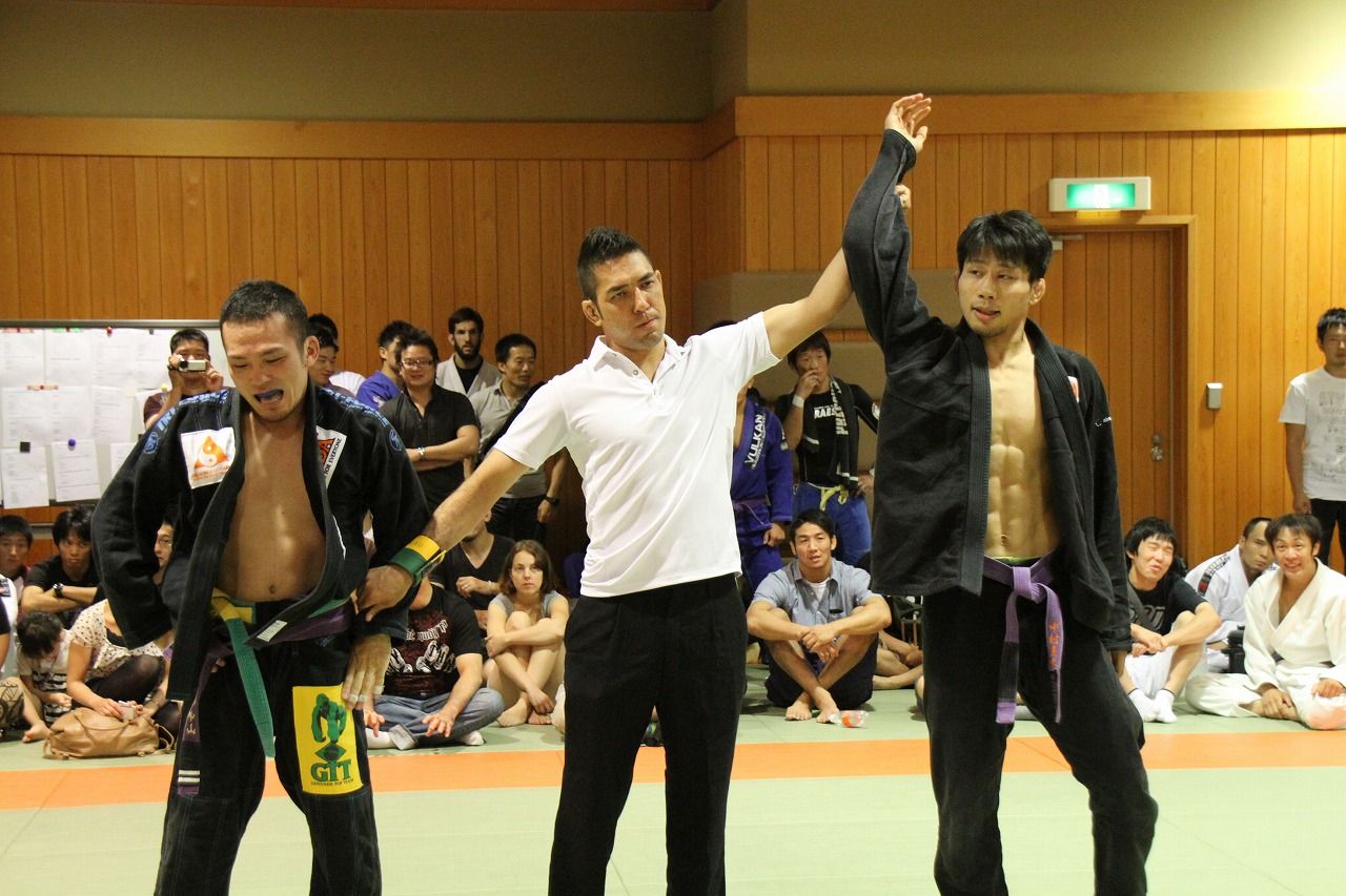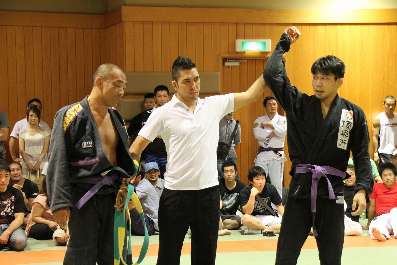 本大会はここ最近の大会でも珍しいチーム3対3対抗戦で優勝を争うというもので、白、青、紫、茶/黒、体重は-220kg、+220kgというカテゴリーに分けられてトーナメント形式で行われました。